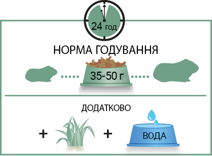ВАЖЛИВО! Оновлюйте їжу і питну воду щодня. Давайте морській свинці достатньо сіна.